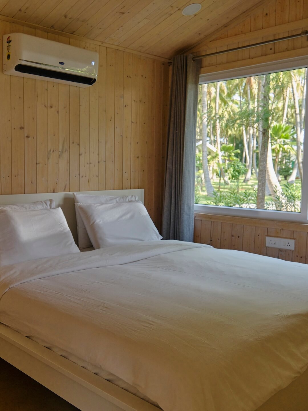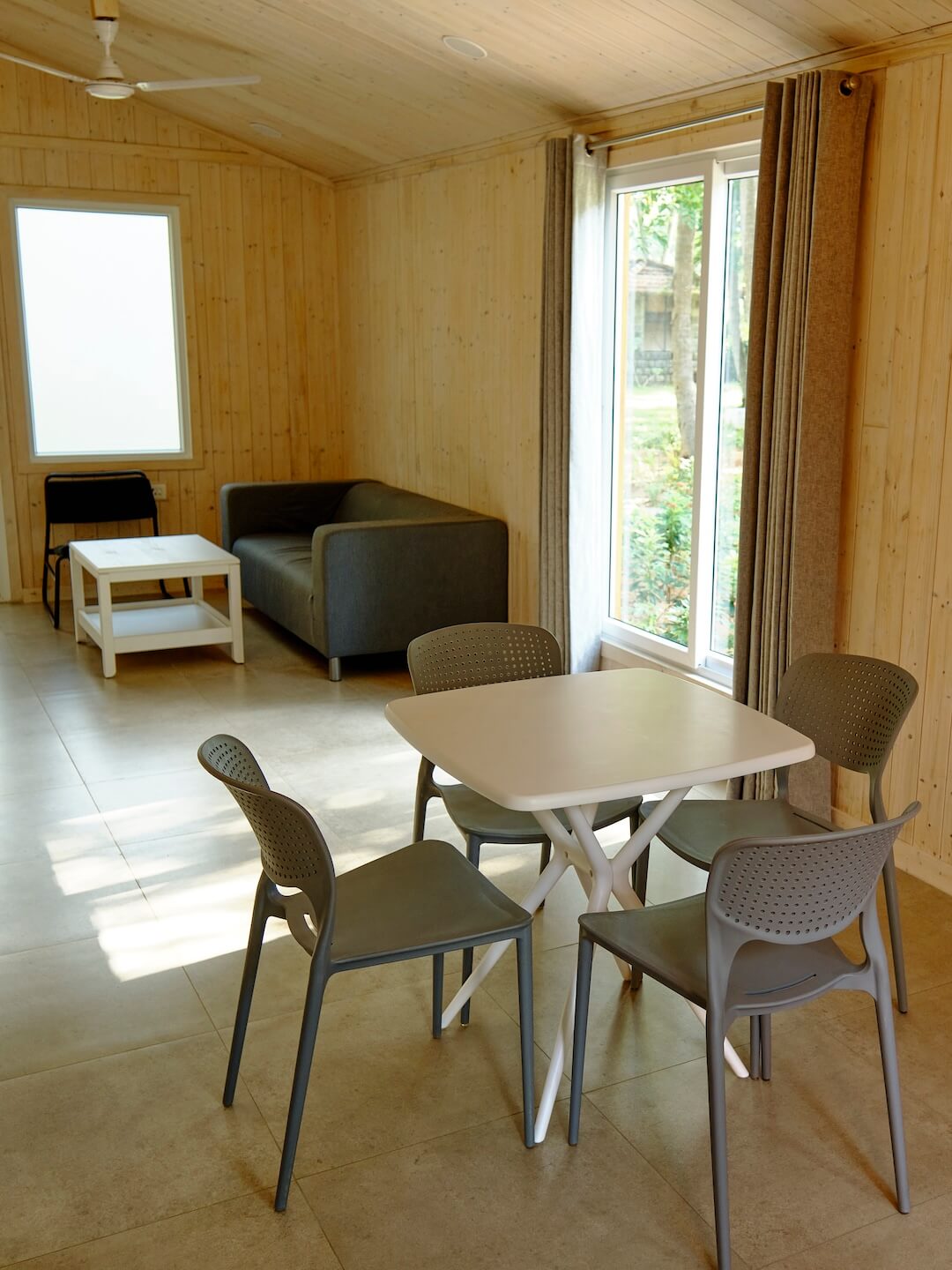 In addition to the private rooms, guests can enjoy a comfortable communal area and a deck designed for leisure and relaxation. At 760 sq. ft, each cabin is finished in a contemporary style, bright and breezy, and set amidst coconut trees, offering a shaded, peaceful environment. Furthermore, the setting allows you to disconnect from daily distractions while staying close to our vibrant Sol community.
